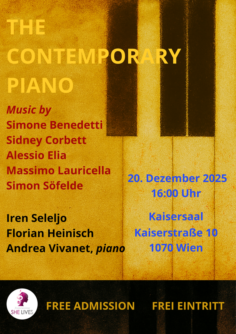 SHE LIVES è un’associazione culturale nata per promuovere la musica del nostro tempo e svincolarla dalla stanca e meccanica abitudine di definirla accostando al sostantivo musica l’aggettivo contemporanea: la contemporaneità non è e non può essere una declinazione del linguaggio musicale, ma la condizione in cui viviamo il tempo presente.