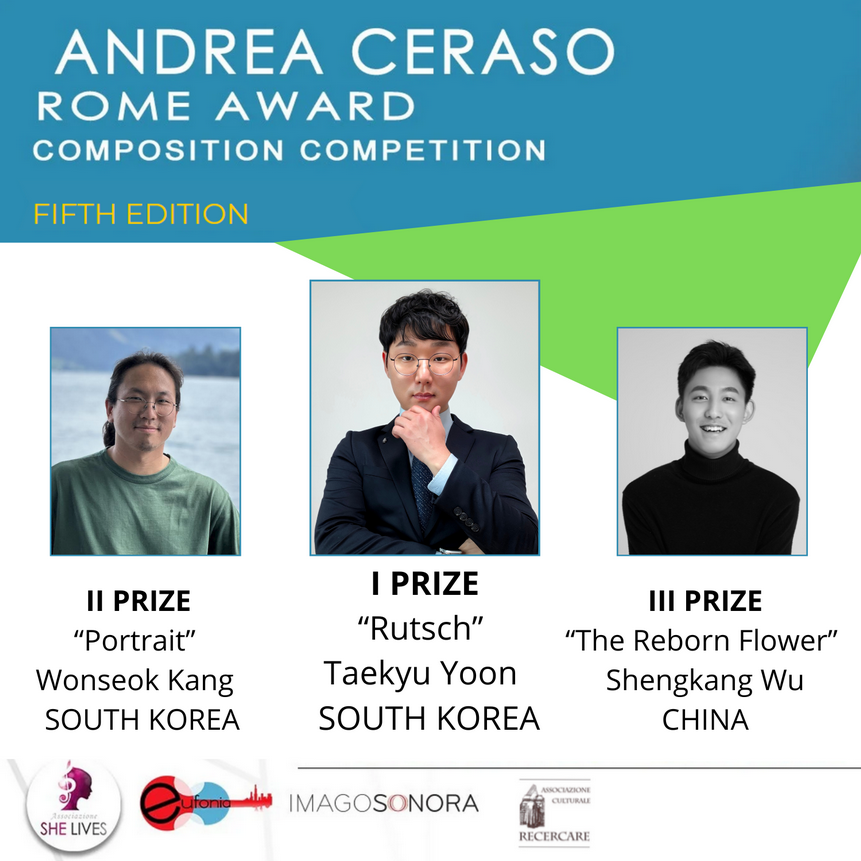 We are proud to announce the fifth edition of the "Andrea Ceraso Rome Award" Composition Competition, the first Italian composition competition in terms of participants, organized by She Lives in collaboration with Eufonia Cultural Association and Imago Sonora Ensemble.